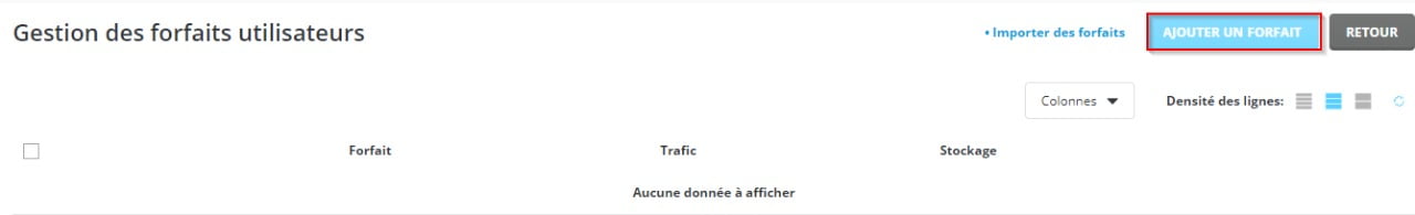 Accédez à Gestion de Compte >> Gestion des forfaits Utilisateurs