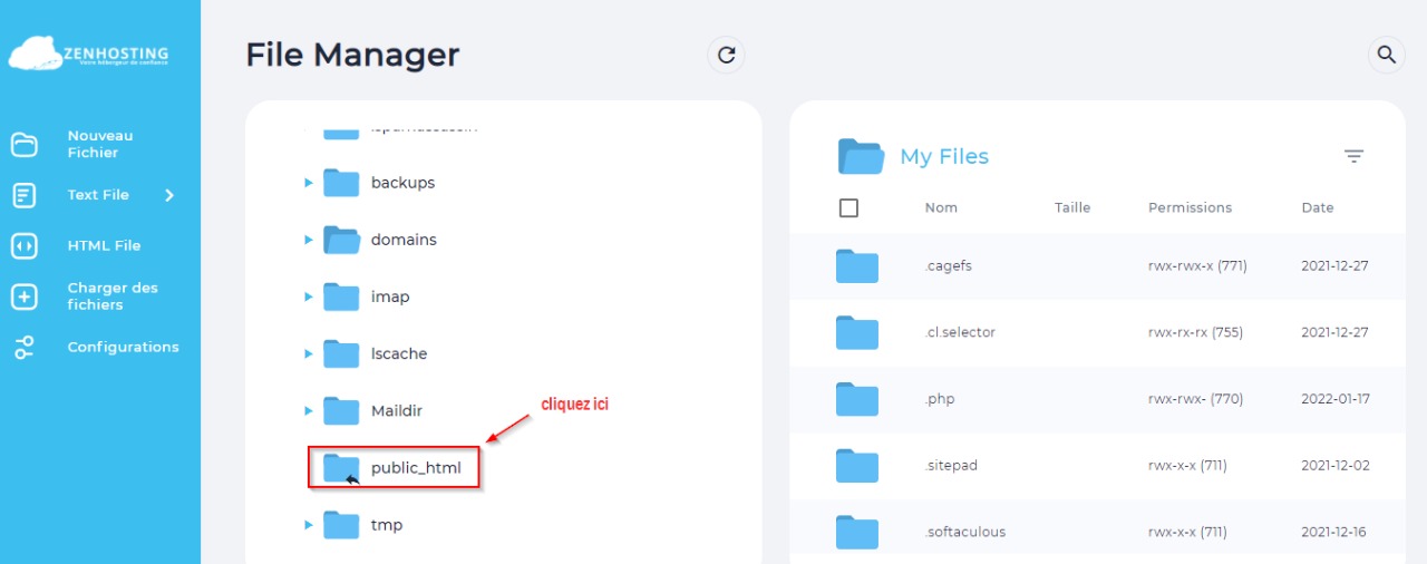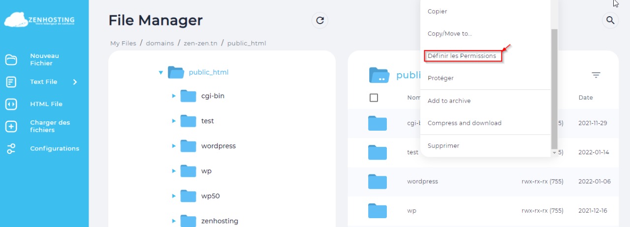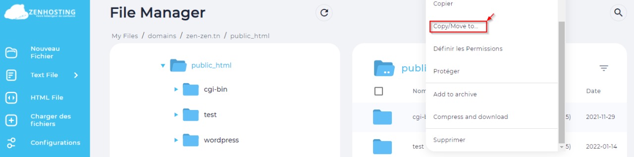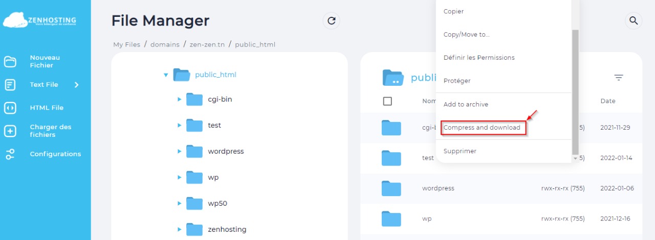 Dans ce tutoriel, nous montrerons comment utiliser le gestionnaire de fichiers en Contrôle Panel Zenhosting. Vous pouvez utiliser le gestionnaire de fichiers dans l’administration directe pour créer, copier, supprimer, modifier, télécharger et télécharger des fichiers/dossiers, etc.