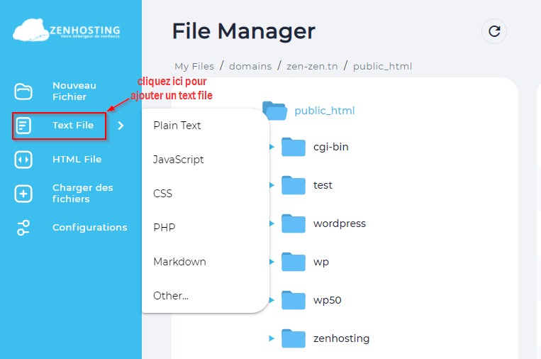 - Connectez-vous à votre Contrôle Panel Zenhosting