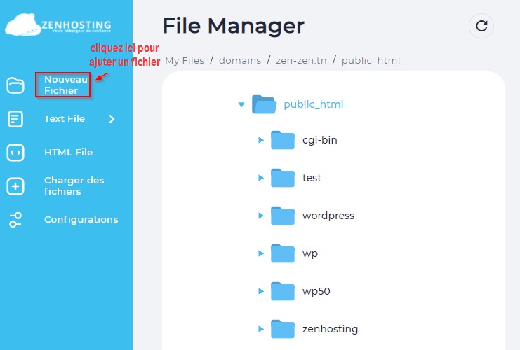 - Si vous voulez ajouter un fichier, cliquez sur Nouveau fichier dans le menu gauche.