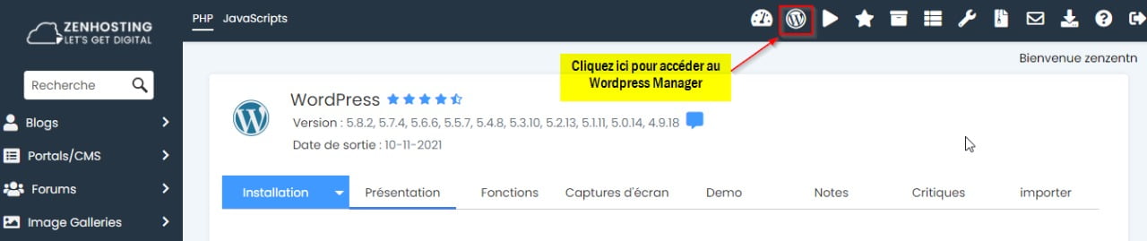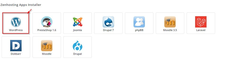 - Accédez au « Zenhosting Apps Installer », et choisissez « WordPress ».