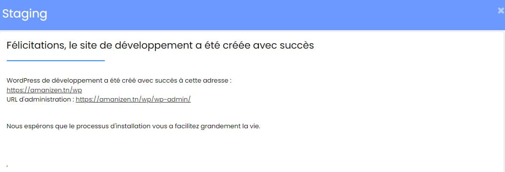 Le staging est une copie de votre site Web de production où vous pouvez prévisualiser les modifications ou les mises à niveau avant de les appliquer sur votre site Web de production. Cela évite tout temps d’arrêt ou erreur inattendue sur votre site Web en direct.