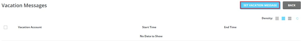 - Le panneau Messages de vacances s’ouvrira. Cliquez sur le bouton RÉGLER LE MESSAGE DE VACANCES.