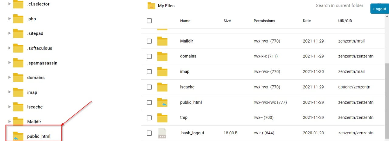 Vous pouvez trouver les fichiers de votre site WordPress dans le répertoire “public_html“. Accédez au “Gestionnaire de fichiers”