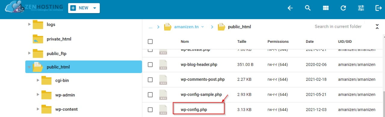 L’un des fichiers les plus critiques de votre installation WordPress est le fichier wp-config.php. Ce fichier est situé à la racine de votre répertoire de fichiers WordPress et contient les détails de configuration de base de votre site Web, tels que les informations de connexion à la base de données.