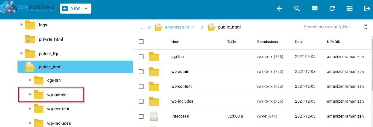 - Connectez-vous à Contrôle Panel Zenhosting.