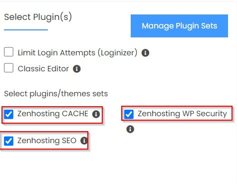 - Sur le bas de la page, choisissez les plugin Zenhosting , nous recommandons d’installer Zenhosting Cache, Zenhosting SEO, Zenhosting WP Security