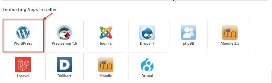 - Ensuite, sélectionnez WordPress sous “Zenhosting Apps Installer”