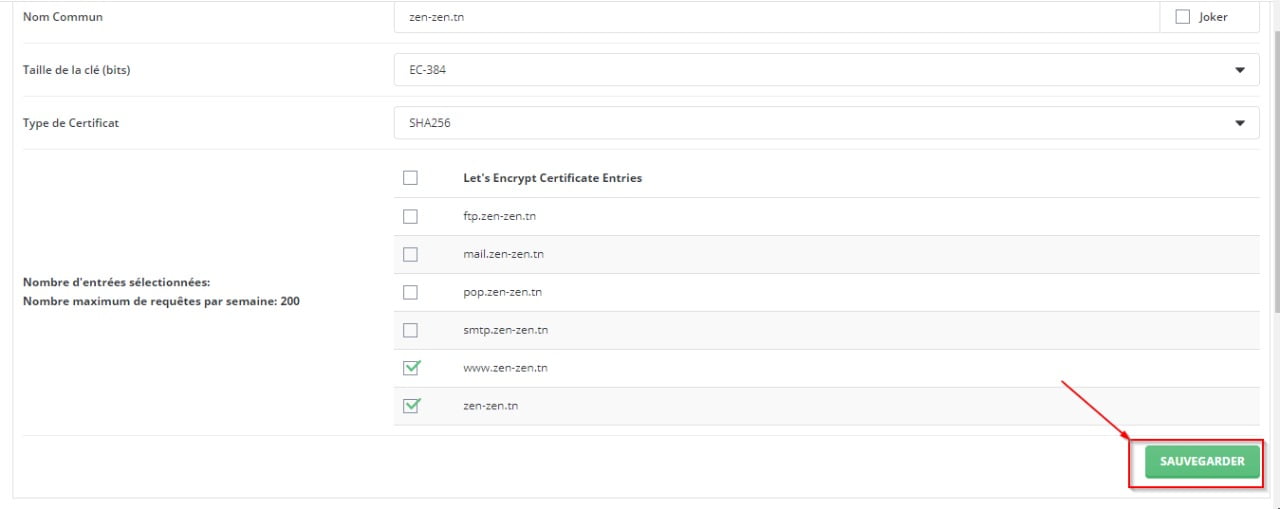 Nom Commun : Ce champs sera rempli automatiquement par le nom de domaine que vous souhaitez sécuriser