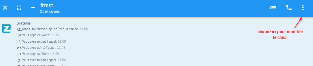 Cliquez sur les trois points dans le coin supérieur droit de la fenêtre afin d’ajouter des participants ou modifier le canal.