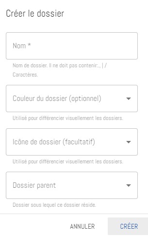 Spécifiez les paramètres de dossier, vous pouvez spécifier la couleur, icone, dossier parent, vous pouvez même purger les messages antérieurs.