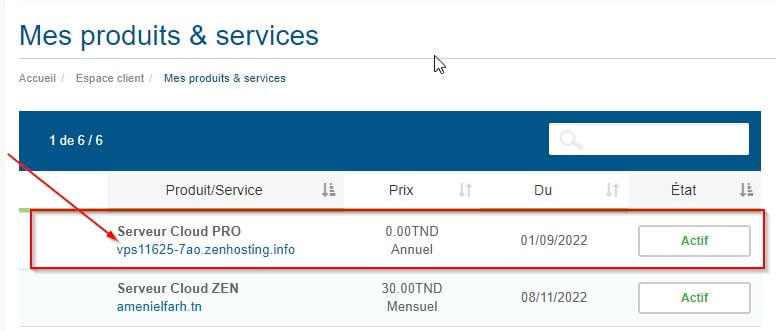 Connectez-vous à votre espace client Zenhosting , accédez à Mes Services.